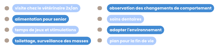 Chez les chats, comme pour nous, le vieillissement est progressif et vient avec des changements subtils.En prenant soin de votre matou senior, vous pouvez aider à ralentir le vieillissement, à prévenir et à gérer les troubles de santé associés et lui accorder une bonne qualité de vie.
