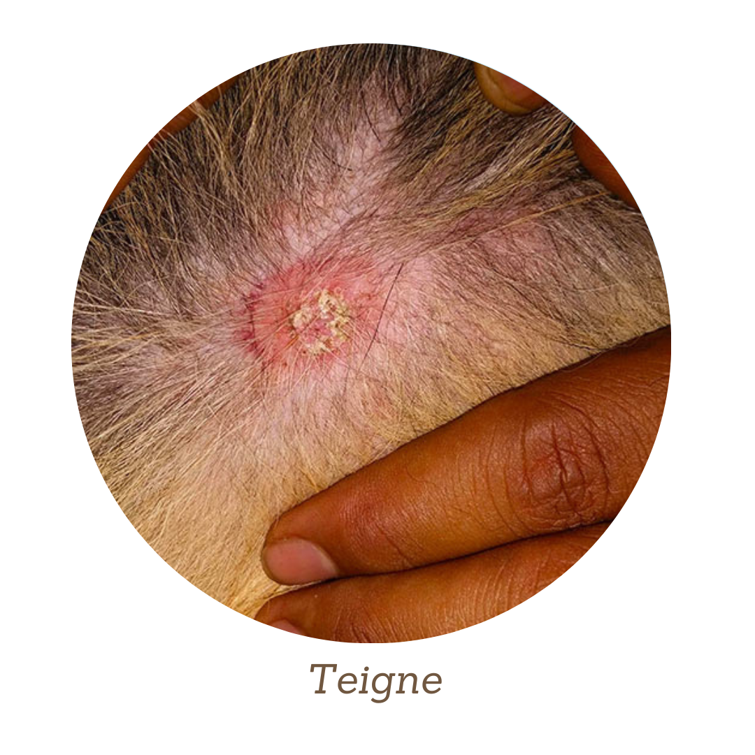 Très contagieuse, la teigne est engendrée par un champignon (dermatophyte) vivant dans les poils et les follicules pileux.