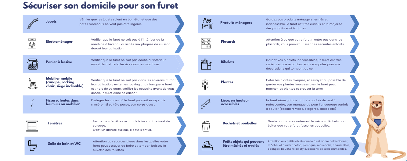 Concrètement, pour une bonne sécurité, il faut garder en tête que le furet ira partout où il pourra.