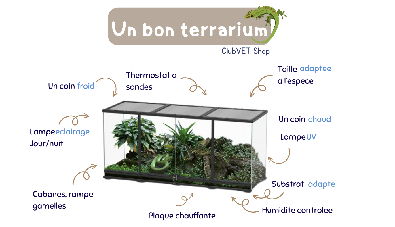 - Contrôler l’exposition aux UVB avec des lampes de qualité et une température ambiante adaptée.